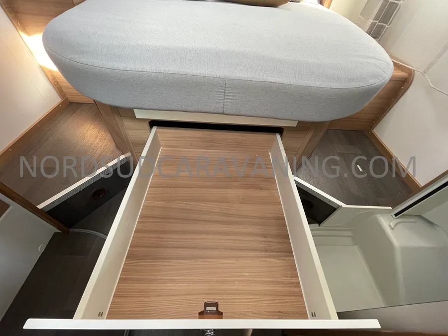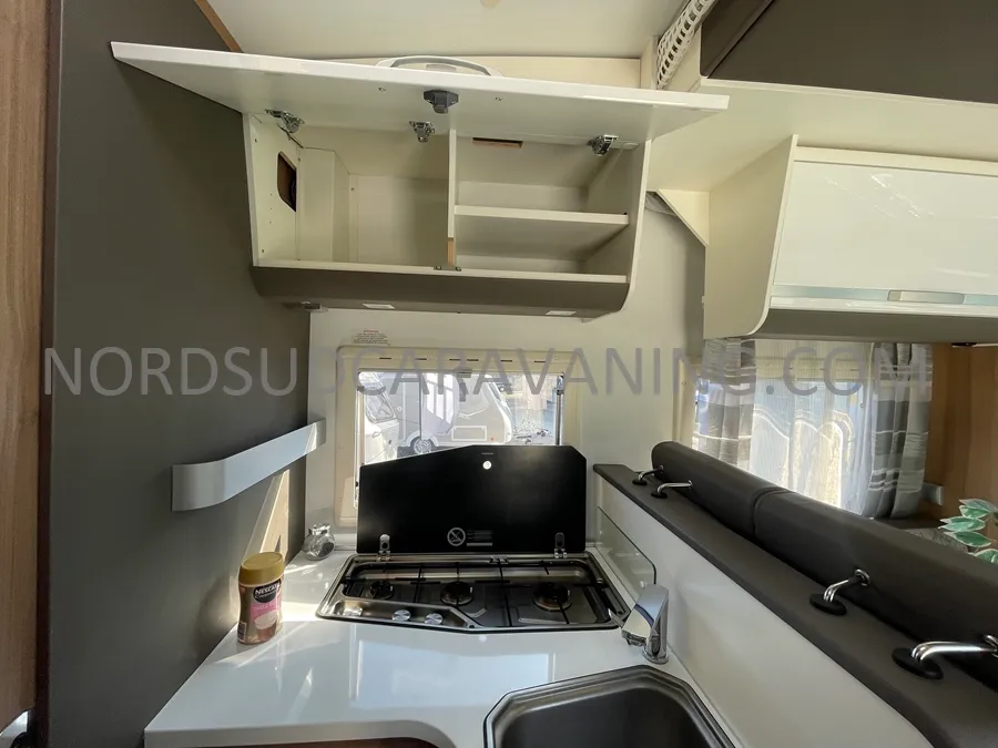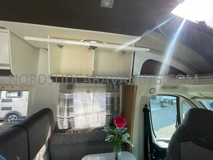 Grâce à sa forme compacte, sa maniabilité vous permettra de circuler ou de vous garer facilement. Vous profiterez de sa grande chambre avec son lit central pour vous garantir une parfaite nuit de sommeil. Son espace dinette agréable et convivial se transforme également en couchage supplémentaire avec son lit dinette et son lit pavillon. Sa cuisine fonctionnelle grâce à ses nombreux rangements optimisés est équipée d’une plaque de cuisson 3 feux gaz avec un couvercle en verre, un évier inox et un réfrigérateur congélateur 141L. Son coin toilette agréable avec WC, Lavabo et Miroir. Juste en face, une grande douche indépendante. Sa soute garage pratique pour transporter son matériel de camping, vélos… Sans oublier ses nombreux agencements astucieux !