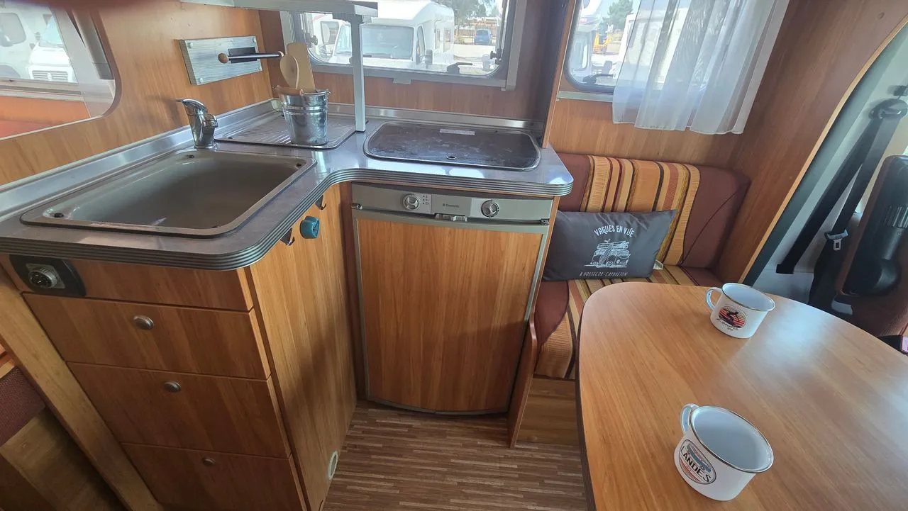 Un camping-car profilé de 5.99m qui malgré son âge à encore de beau jours devant lui, vous serez surpris par la fiabilité et la robustesse du mobilier BURSTNER.