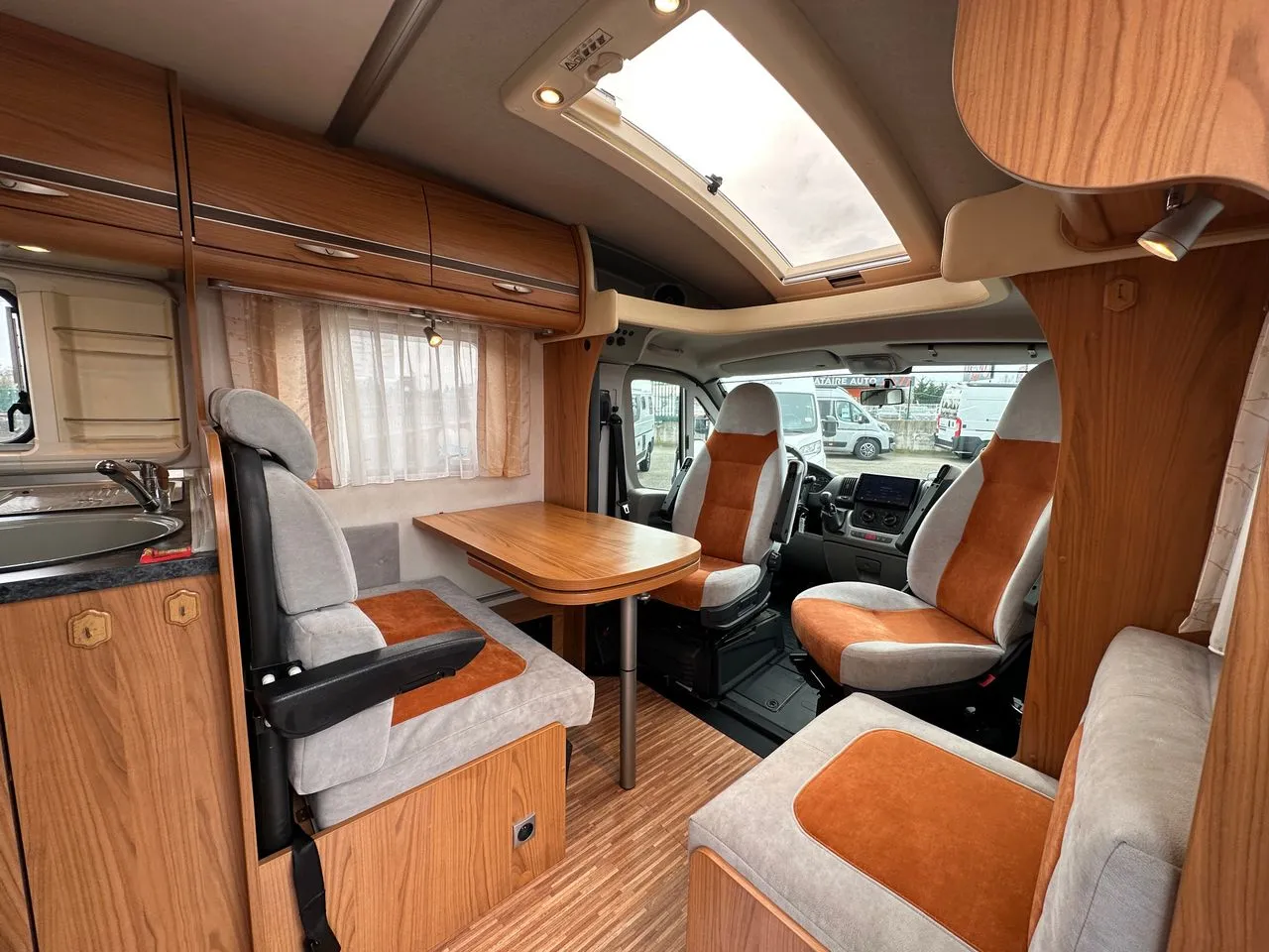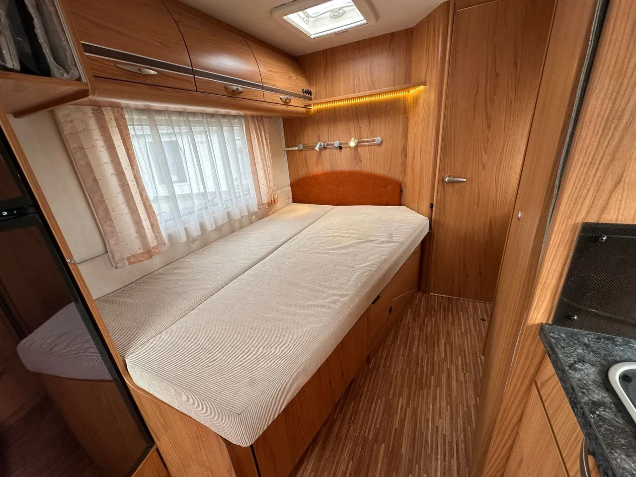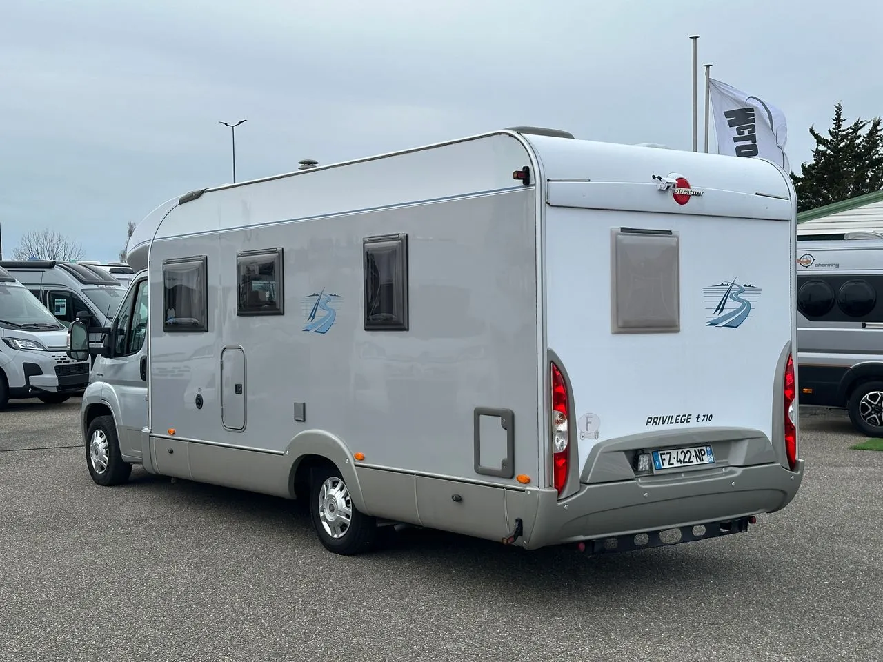 Un profilé haut de gamme de chez BURSTNER, le T710 avec lit à la française, salle d’eau arrière avec douche séparée.