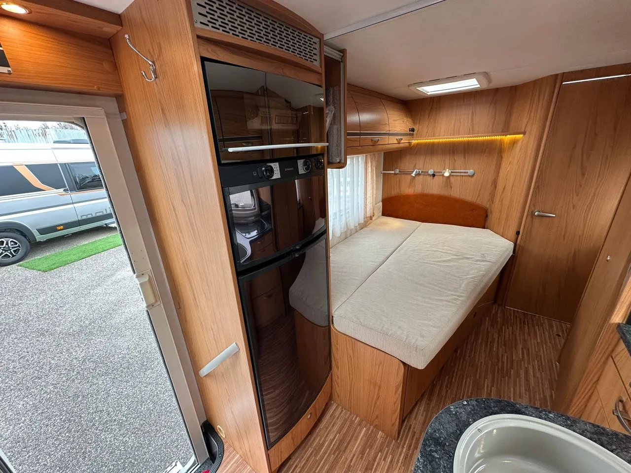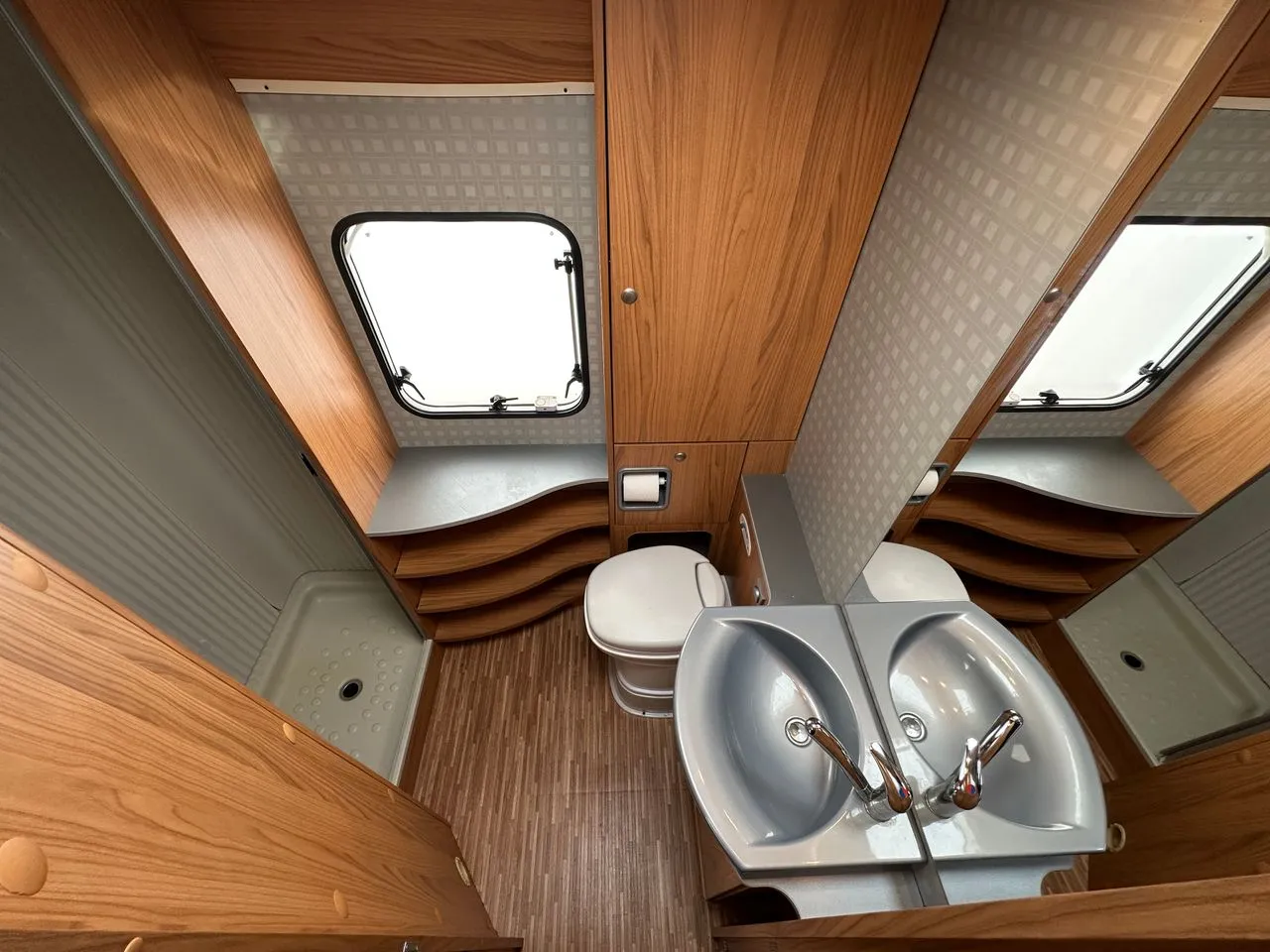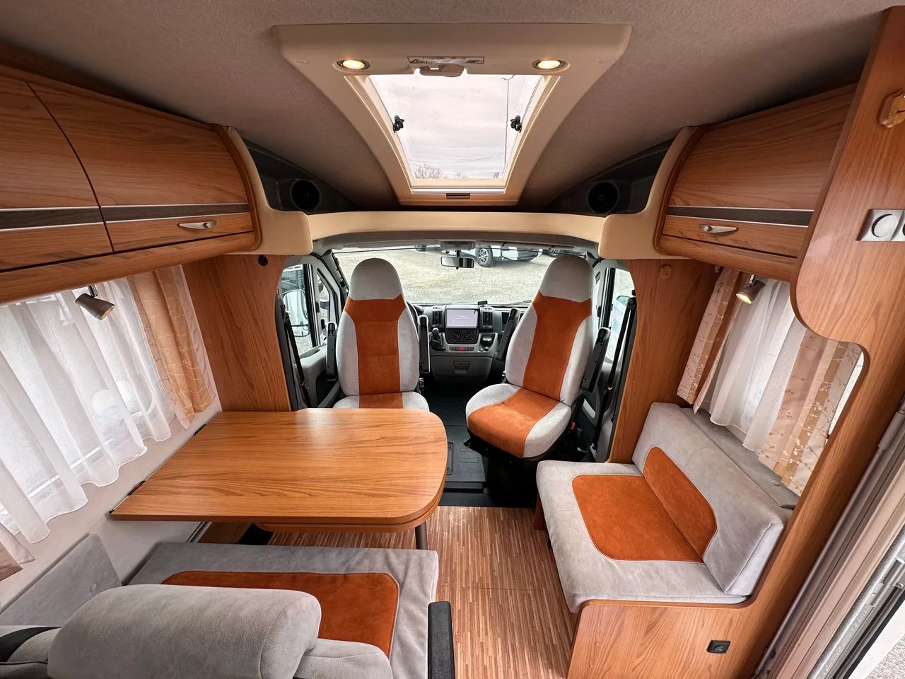Un profilé haut de gamme de chez BURSTNER, le T710 avec lit à la française, salle d’eau arrière avec douche séparée.