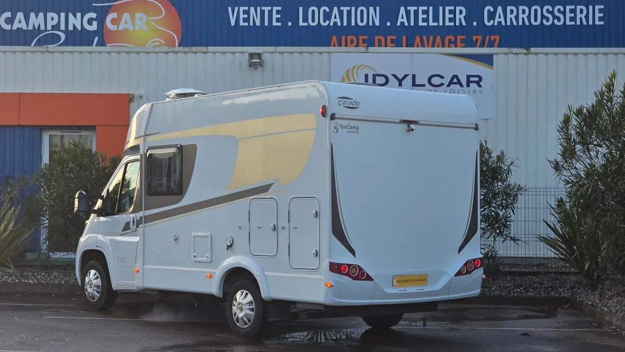 Découvrez ce camping-car Profilé CARADO de 5.98mètres, compact et parfaitement agencé, offrant confort et autonomie.