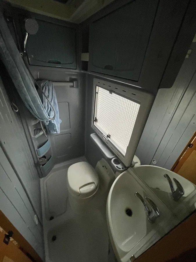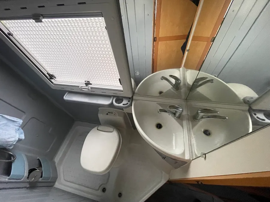 Un coin cuisine pratique et fonctionnel avec grand réfrigérateur congélateur trimixte, Réchaud 3 feux, Evier inox. Une salle de bain avec WC, Lavabo, Miroir et douche. Sans oublier ses nombreux rangements.