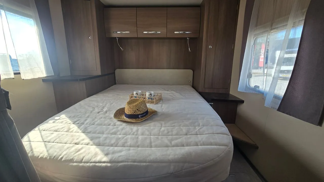 La chambre est dotée un lit central et d’un lit pavillon . Enfin un cinquième dormeur pourra s’installer dans le lit dinette.