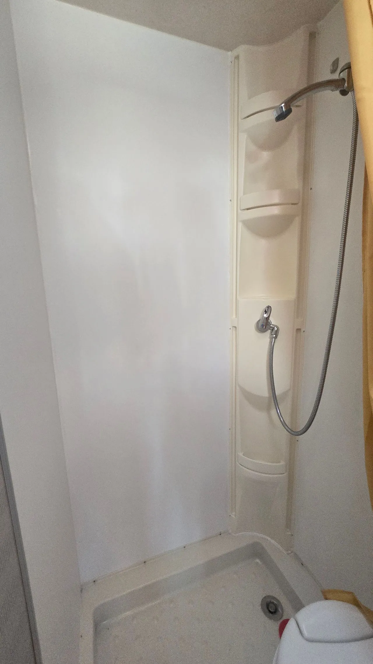 Il offre un espace salon spacieux et un coin cuisine avec un évier et une gazinière. La sale de bain est composée d’un lavabo et d’un WC, la douchette séparée.