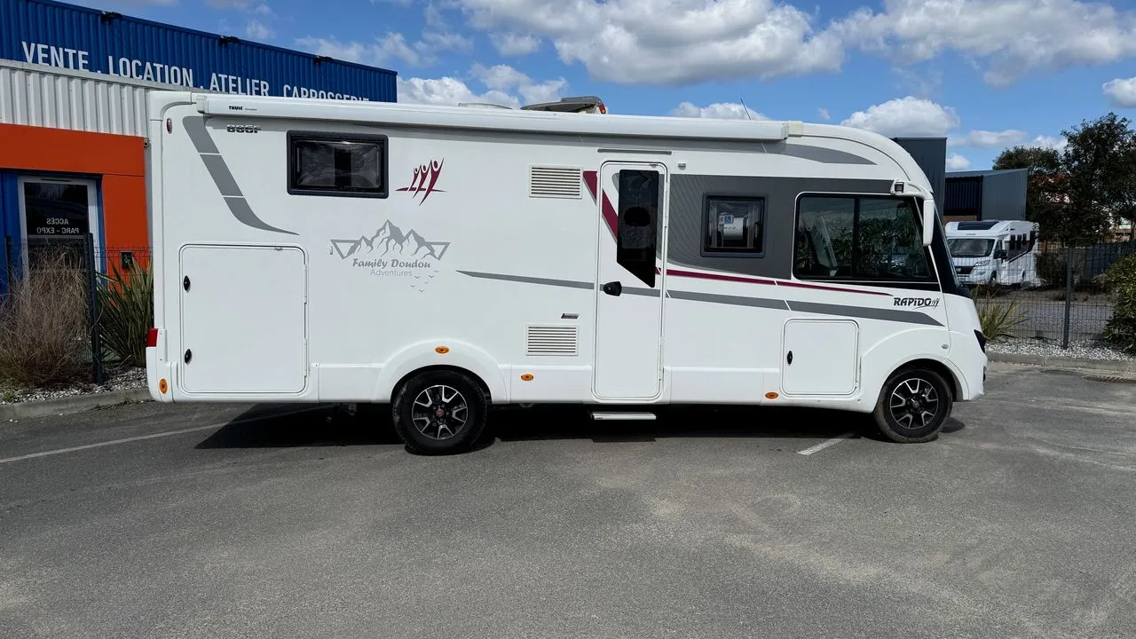 Caméra de recul avec vision nocturne, station multimédia Pioneer avec écran 6,2’’, airbag passager, régulateur de vitesse avec limiteur, ESC avec ASR(anti-patinage), ROM (antiroulis) at aide au démarrage en côte, rétroviseurs électriques et dégivrants, siège cabine réglable en hauteur, store pare-brise isotherme, porte cellule à serrure 2 points avec baie, moustiquaire de porte cellule, hauts-parleurs en cellule, hotte cuisine, inverseur de gaz Duo Control, sellerie TEP Milan avec surpiqures, jantes Alu Fiat 16’’tiroir de rangement extérieur, réservoir d’eau chauffé.