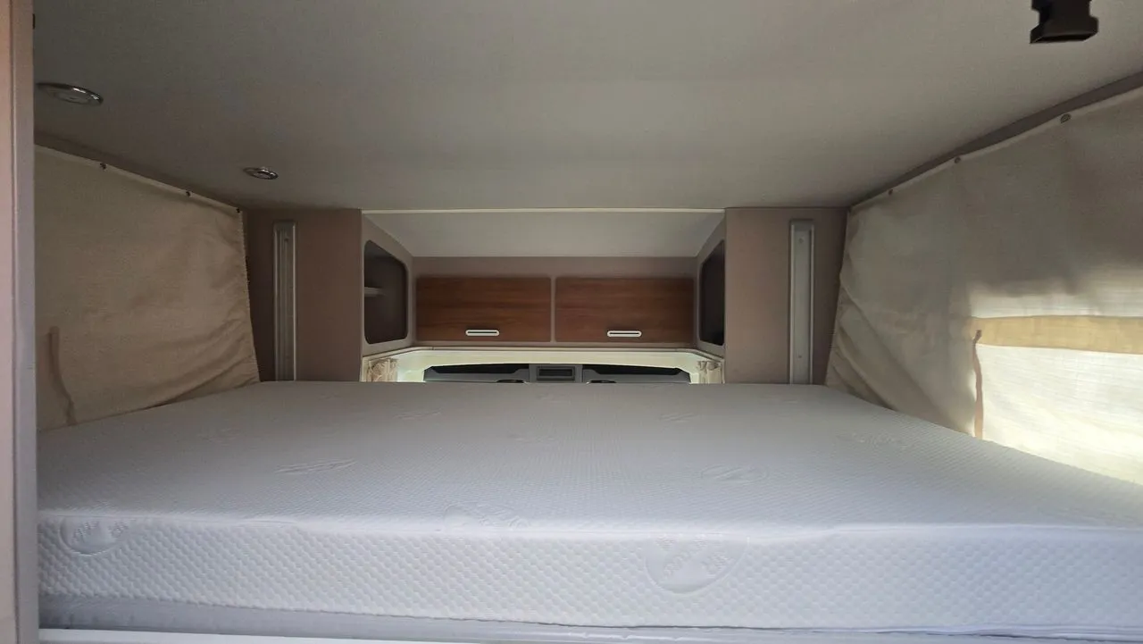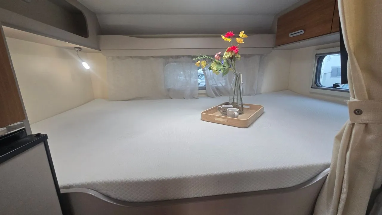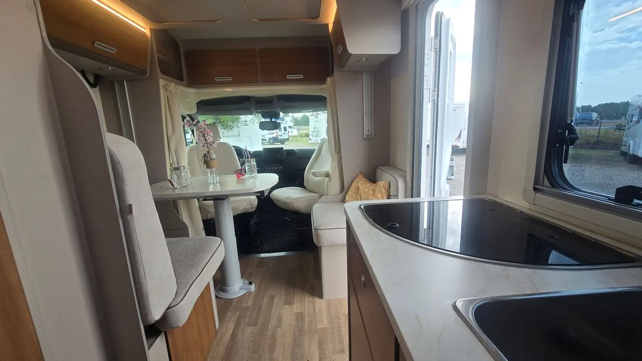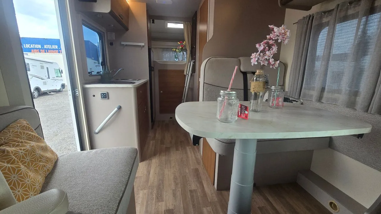 Camping-car profilé RIMOR HYGG 14 de 6,81 mètres, parfaitement adapté aux séjours en famille.