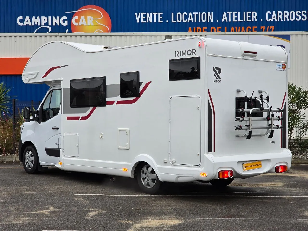 Info sur la société: parc de vente, location, magasin d’accessoires, atelier réparation, carrosserie + cabine spéciale camping-car, aire de lavage 24h/24h. 5 000m2 pour mieux vous recevoir
