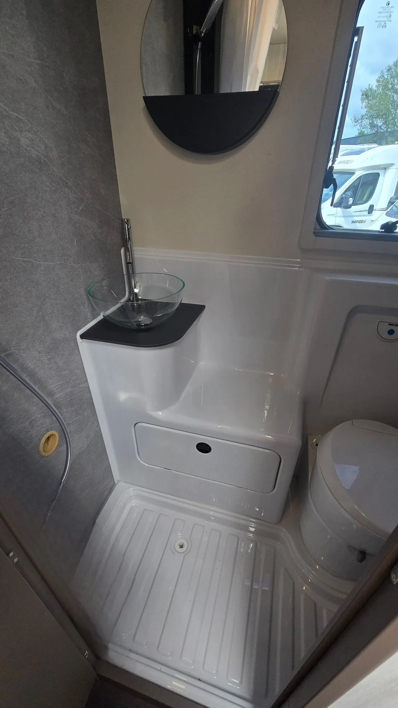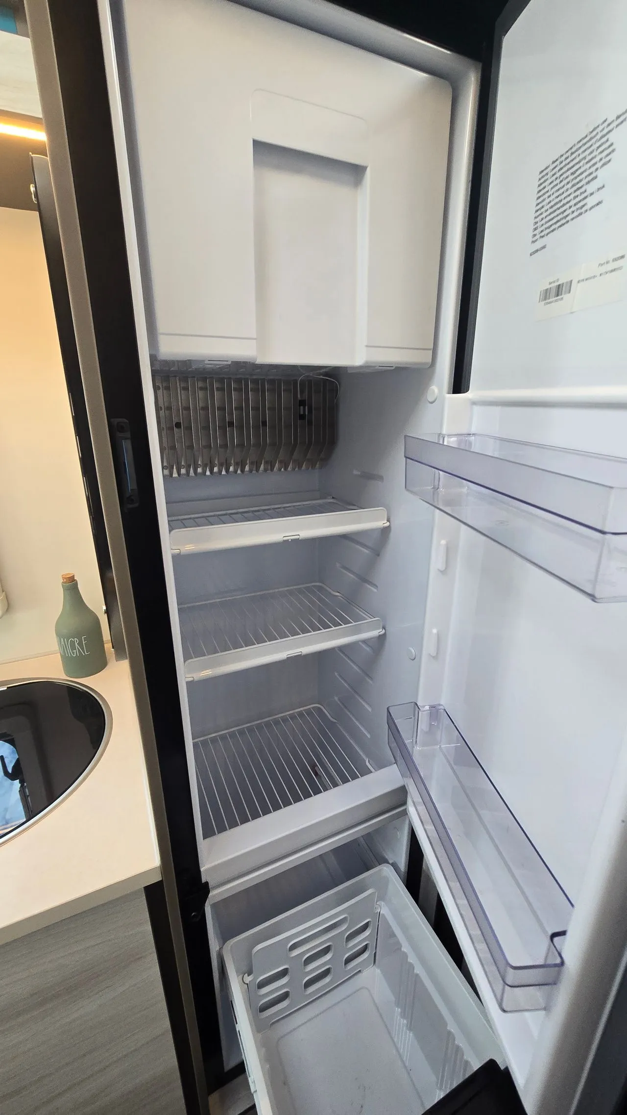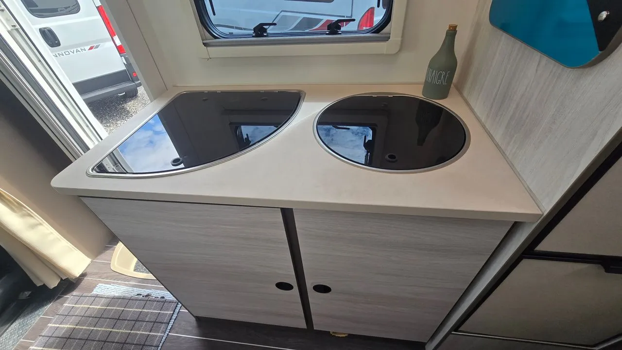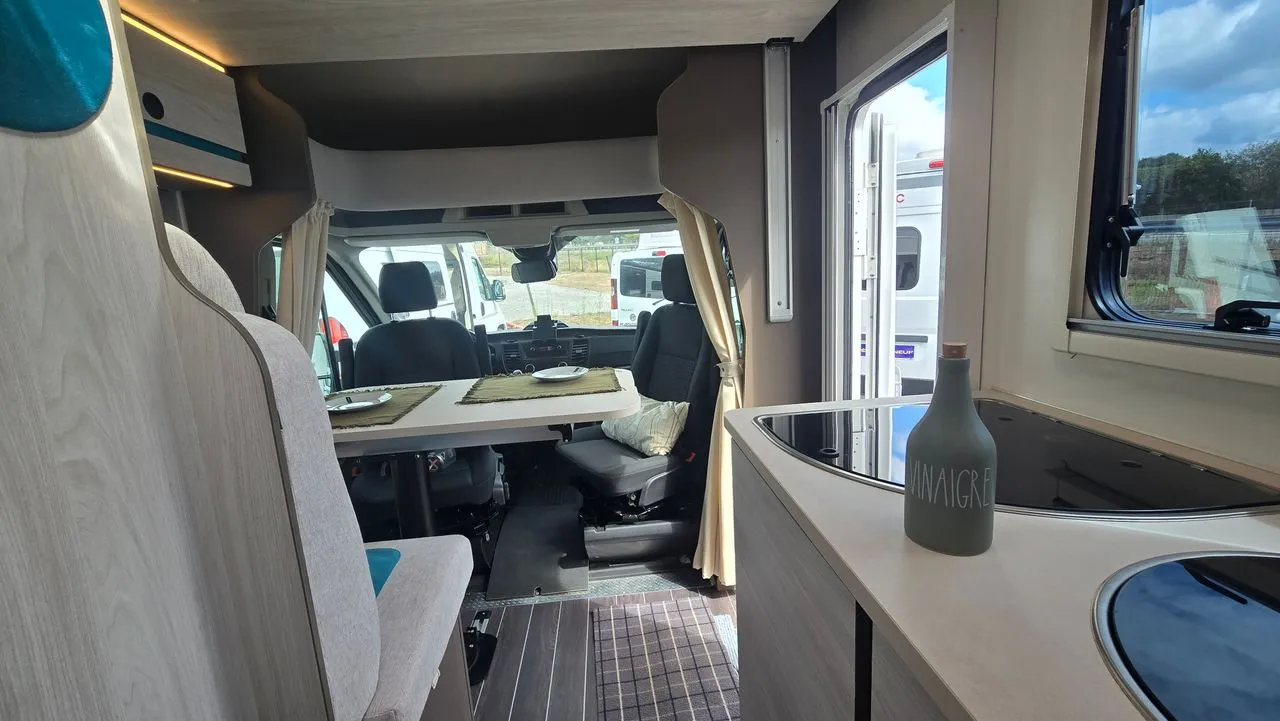 Magnifique profilé de 5.95 mètres avec salon, salle d’eau, cuisine avec grand réfrigérateur congélateur et pour finir lit sur grande soute.