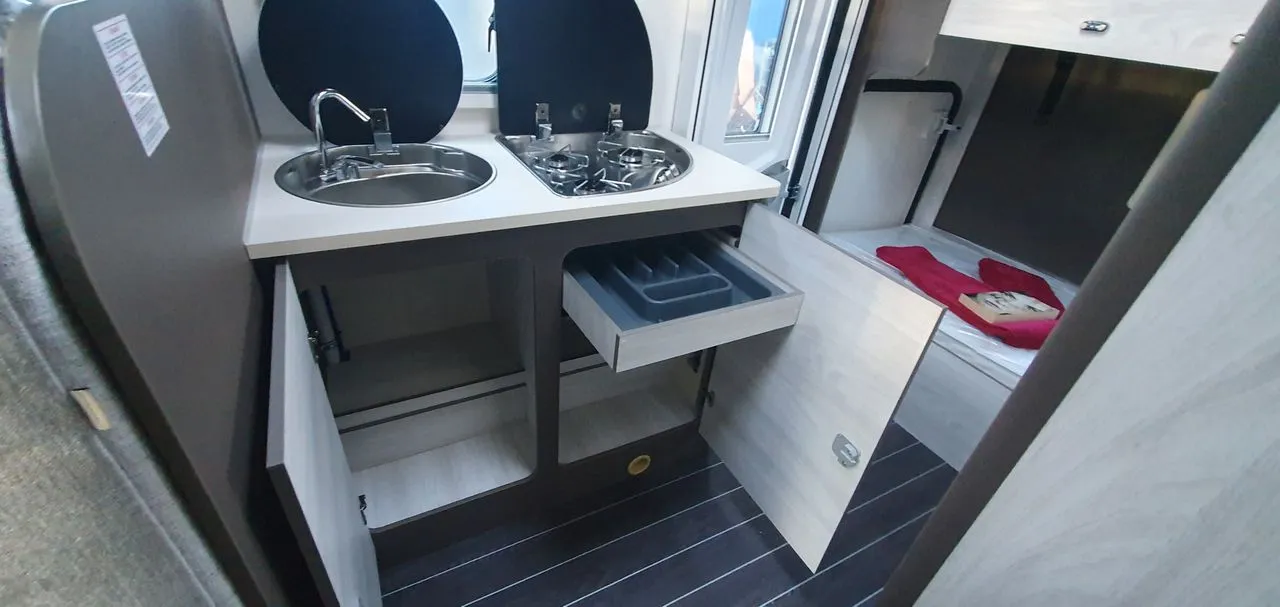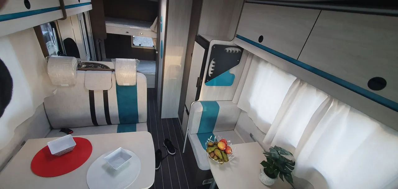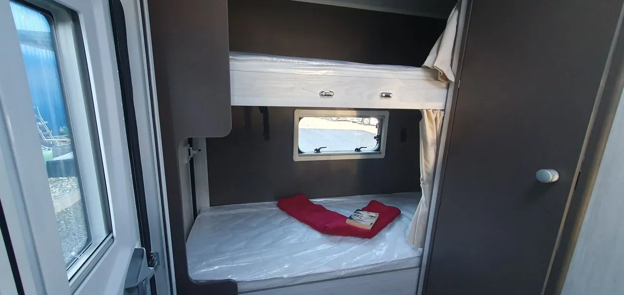 Capucine avec lit superposé en 6 places carte grise et 6 couchages. A bord de ce modèle se distinguent par leur style intérieur moderne, avec des matières chaleureuses et apaisantes. Les équipements de série sont de qualité, avec des sommiers à lattes dotés de matelas à haute densité ou encore un réfrigérateur congélateur de 141 L.