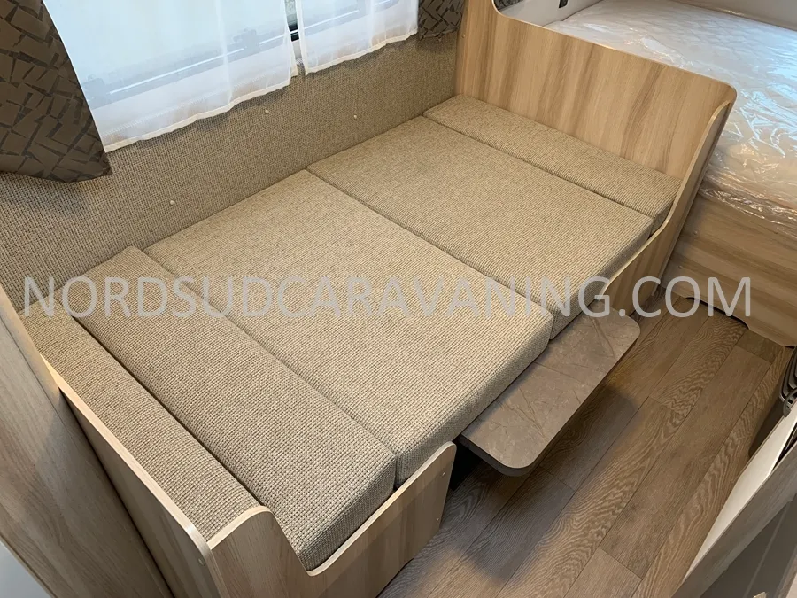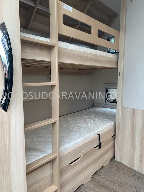 La caravane rigide Hobby de Luxe 490 KMF, caravane familiale par excellence, vous offre jusqu’à 5 couchages entre ses lits superposés, son lit transversal très confortable, sa dinette transformable en couchage d’appoint, elle vous permettra de passer de bons moments entre amis ou en famille.