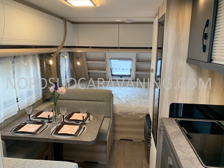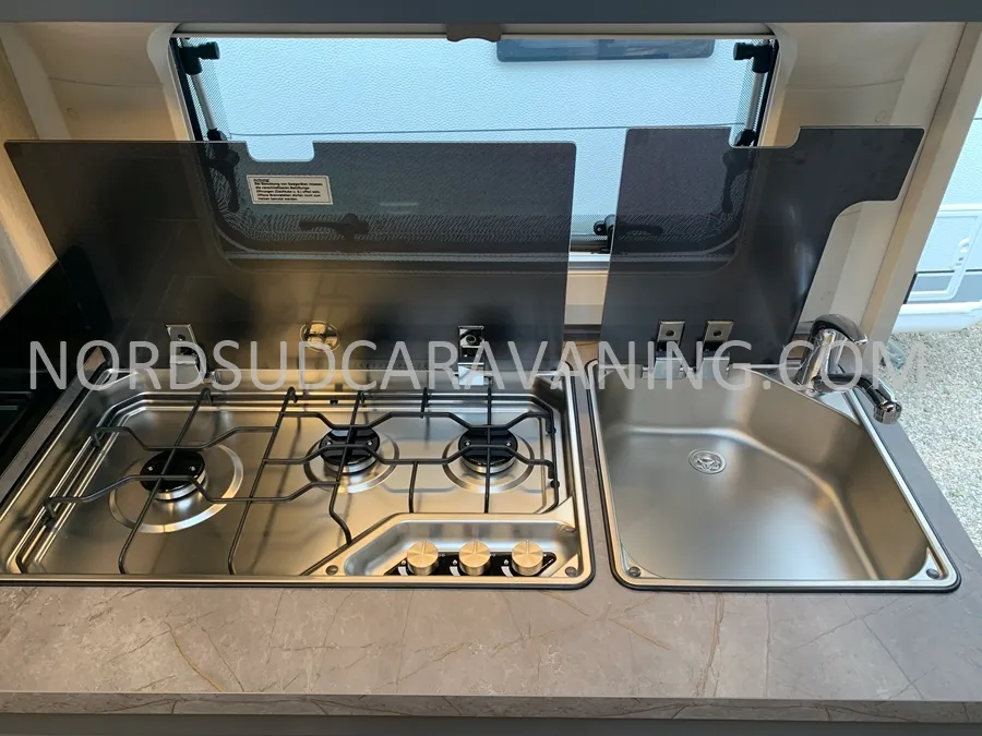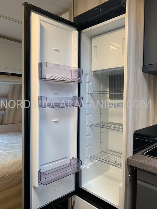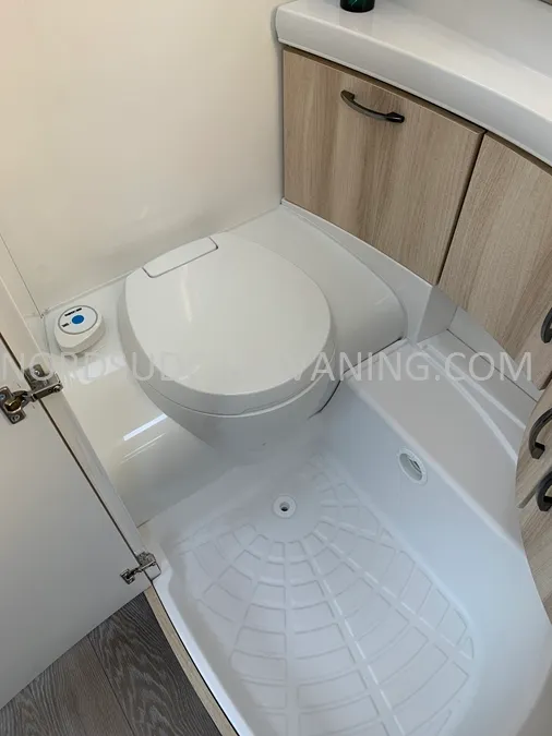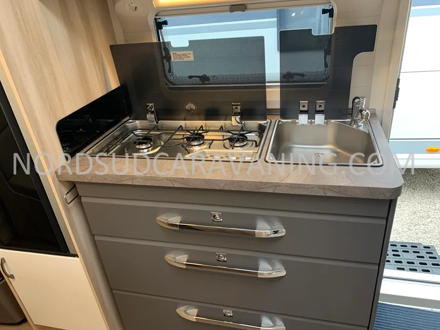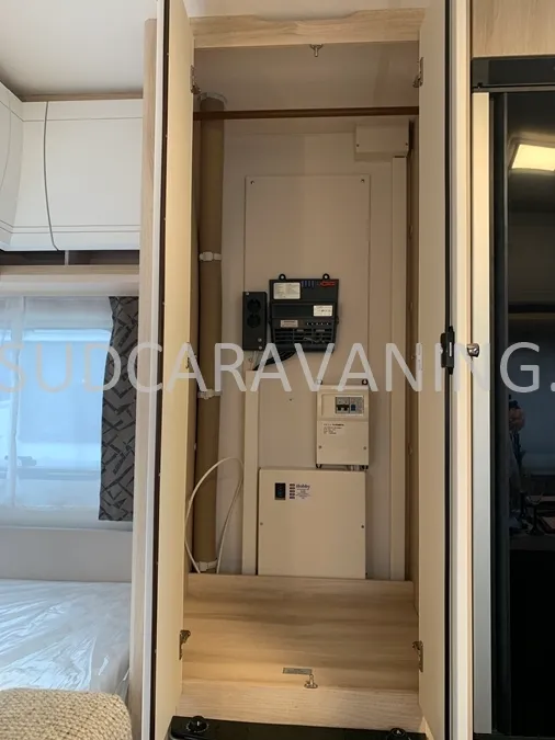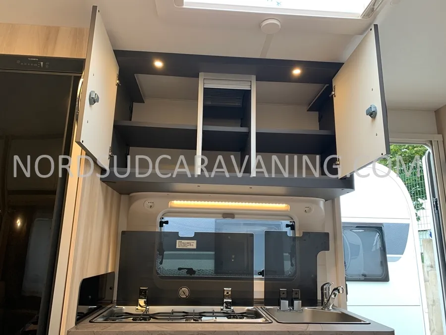Pratique avec ses nombreux rangements (soute, penderie, placards de pavillon….), elle est très fonctionnelle avec sa cuisine équipée d’un réchaud 3 feux et évier inox protégés par un couvercle en verre et d’un réfrigérateur à absorption 133L. Sans oublier son coin toilette avec WC à cassette, bac de propreté et lavabo. Elle vous offrira tout le confort comme à la maison !
