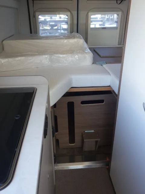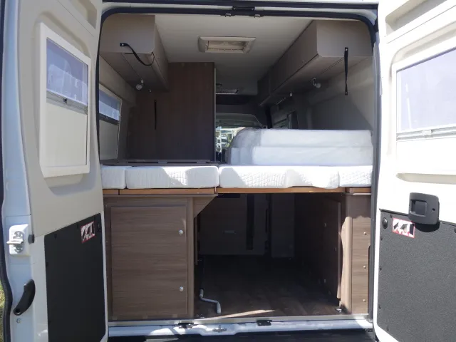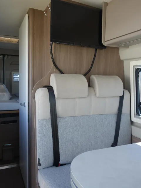 Fourgon lits jumeaux, cabinet de toilette avec douche et WC, état neuf, équipement complet: store, panneau solaire, antenne satellite automatique, TV, auto radio, caméra de recul, porte vélos. prêt à partir.