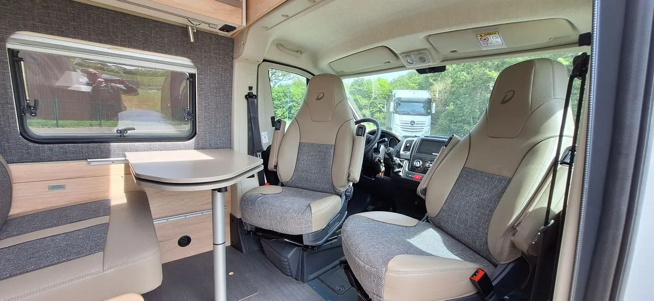 Son implantation optimisée offre un bel espace de vie avec un coin cuisine fonctionnel, une salle d’eau avec douche et WC, ainsi qu’un couchage confortable à l’arrière. Idéal pour les couples ou les voyageurs en quête de liberté, ce fourgon allie confort, praticité et qualité de fabrication Dethleffs.