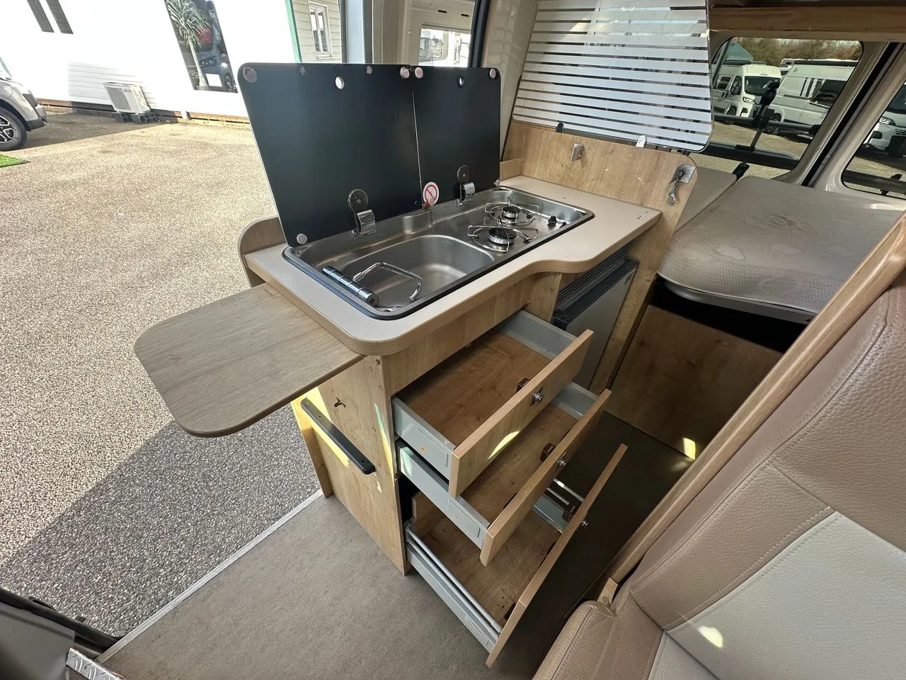 Nombreux rangements à bord.