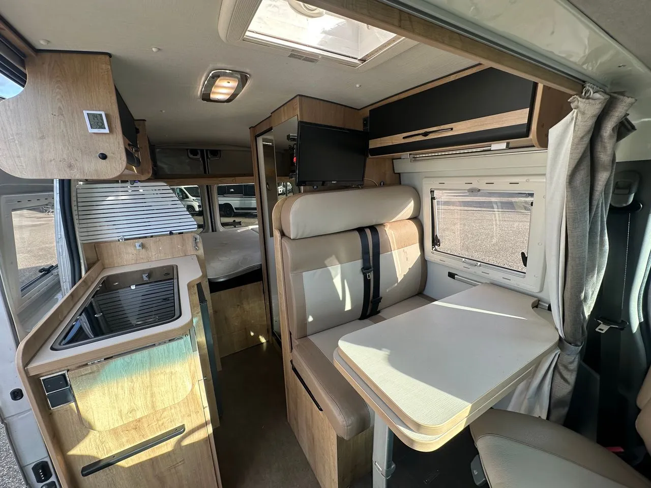Une occasion à saisir ! Fourgon d’excellente fabrication, isolé 4 saisons avec lit transversal arrière. Compact en 5.50m