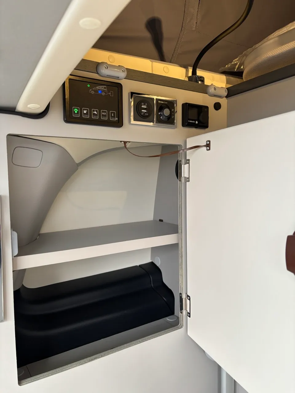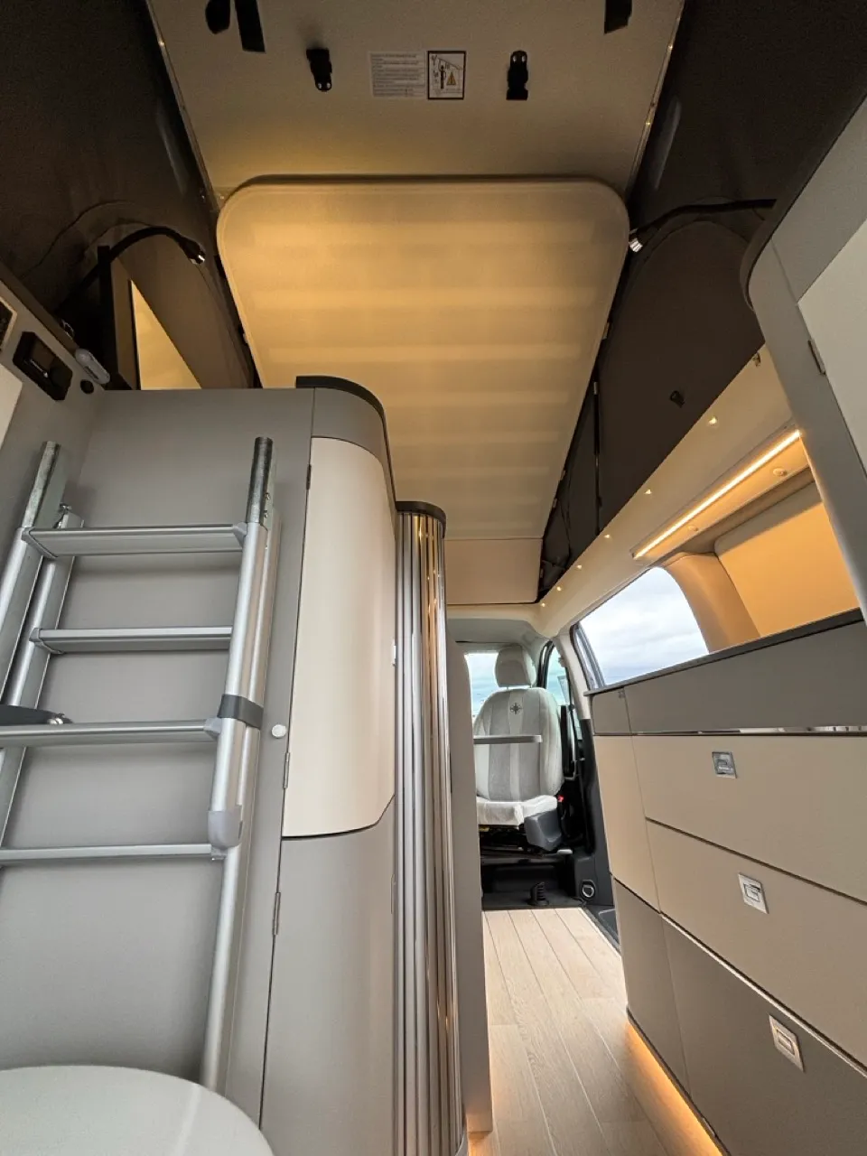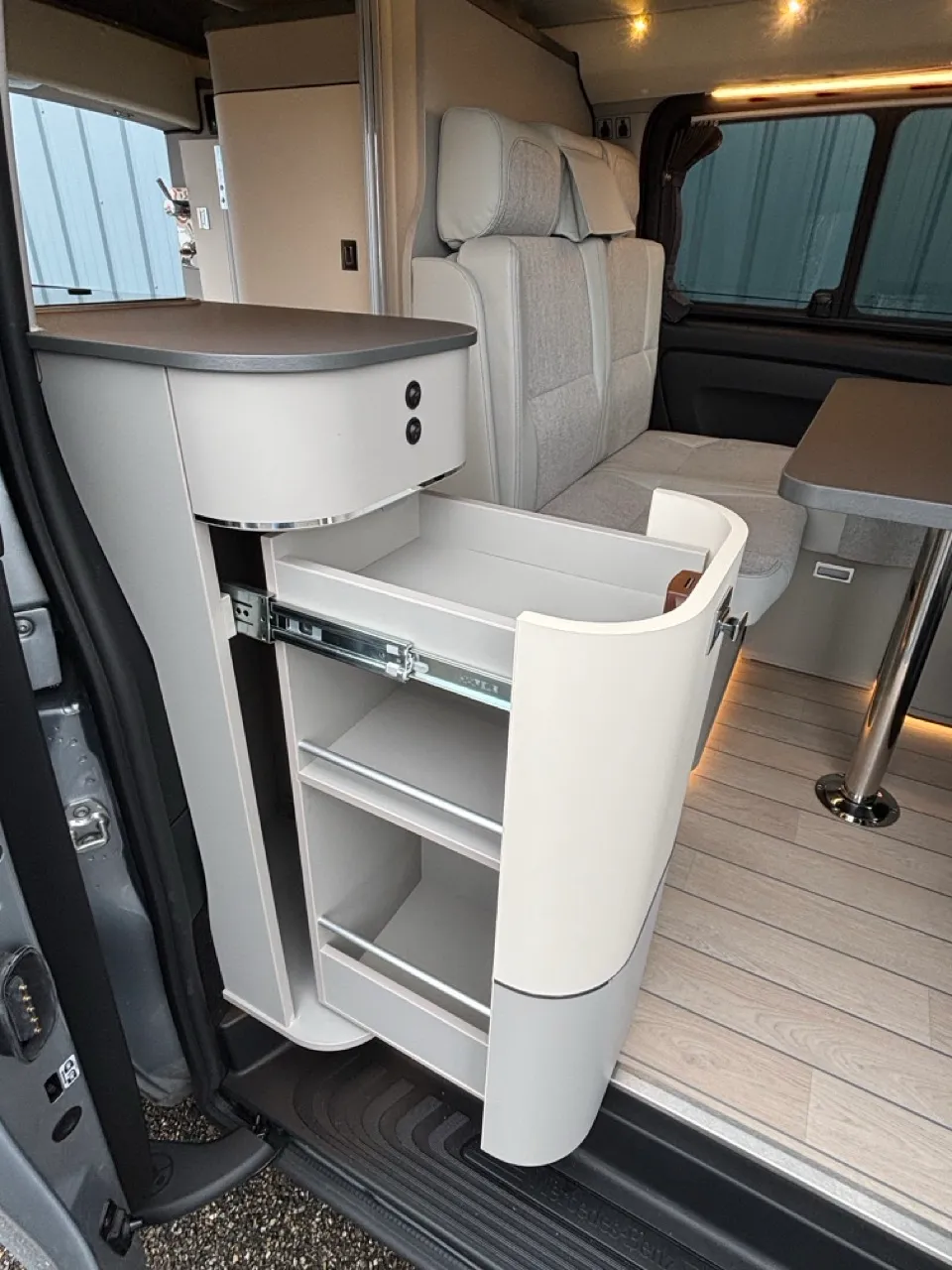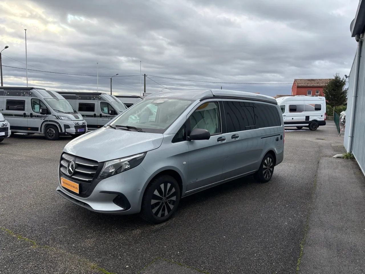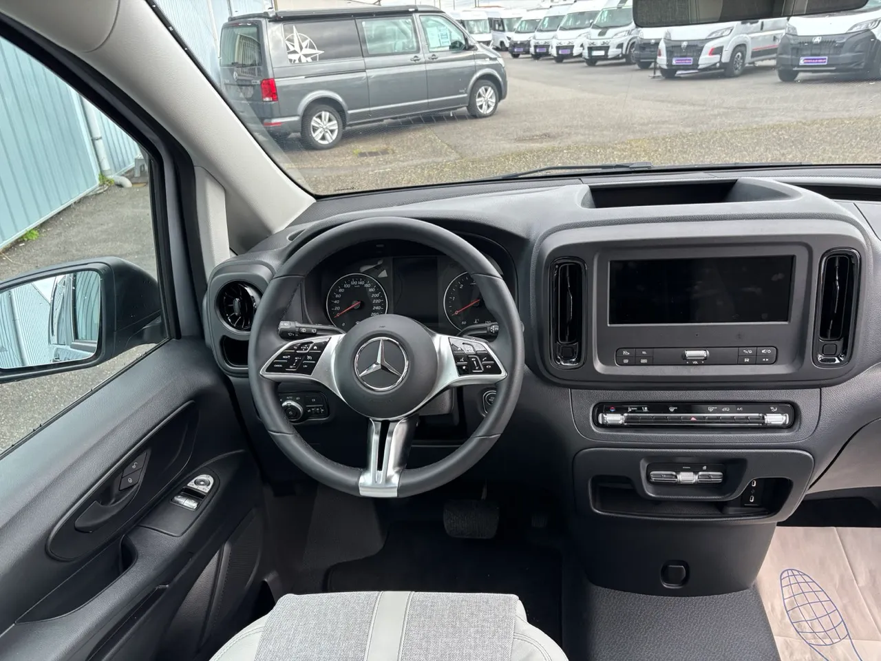 Bouton de démarrage Keyless, Climatisation cabine semi-automatique, Jantes acier enjoliveur 17″, PACK DRIVE : Affichage pression des pneus, Assist. de limitation de vitesse intelligent lecture des panneaux, Avertisseur de franchissement de ligne actif, Caméra de recul, Détection somnolence, Freinage d’urgence assisté actif, Régulateur de vitesse, Système stabilisation pour vent latéral, Pare-choc av/arr ton carrosserie, Phares halogènes allumage automatique, Sièges cabines pivotants et réglables en hauteur avec soutien lombaire, Système Multimédia MBUX Auto-radio 5x haut-parleurs, Commande vocale « hey Mercedes », Ecran tactile 10,25″ avec interface Bluetooth, port USB-C, Mercedes Remote Services Plus : fermeture centralisée, géolocalisation. Volant multifonctions + combiné instrument couleur, Système appel d’urgence. PACK JULES VERNE : Batterie cellule AGM 92Ah, Portes latérales coulissantes droite et gauche, Pré-disposition électrique attelage, Pré-disposition électrique panneau solaire, Rétroviseurs extérieurs dégivrants rabattables électriquement + détecteur angle mort, FINITION EXCLUSIVE : Boîte auto 9G-tronic, volant gainé cuir, grille calandre chromée, pack stationnement avec caméra de recul, peinture métallisée, vitres teintées latérales & arrière, jantes alliage 17′ R1N, 4 MATIC, Pack intégration smartphone (compatible Androïd et Apple car play), Attelage amovible